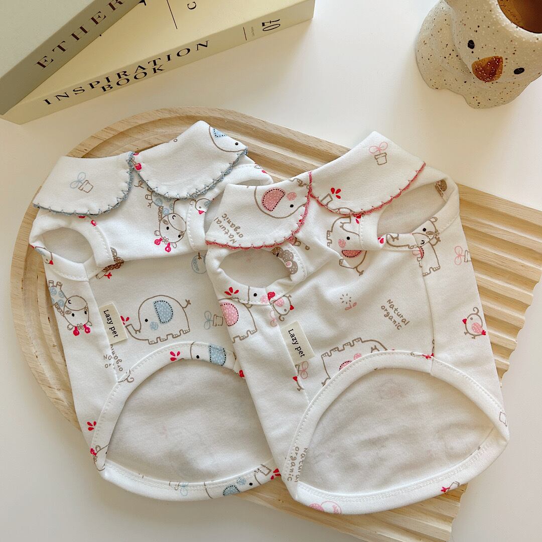 動物のイラスト、丸襟、色合い可愛さがギュッと詰まった一枚で可愛い我が子にピッタリです♡